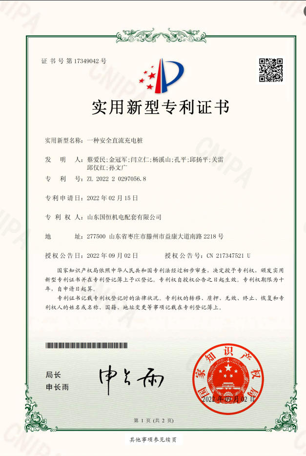山東國(guó)恒機(jī)電配套有限公司簡(jiǎn) 介 山東國(guó)恒機(jī)電配套有限公司是一家集新能源、高科技、智能化生產(chǎn)研發(fā)、制造、銷(xiāo)售為一體的綜合性現(xiàn)代化高新技術(shù)企業(yè),公司座落在魯班故里、墨子之鄉(xiāng)滕州,公司始建于2005年,注冊(cè)資本1億元,擁有各類(lèi)中、高級(jí)專(zhuān)業(yè)技術(shù)人員100余名。主營(yíng)業(yè)務(wù)涉及高科技智能電力裝備、新能源儲(chǔ)備輸送,220kv及以下輸變電工程勘察設(shè)計(jì)、制造、銷(xiāo)售、安裝、售電和智能充電樁能效運(yùn)維,并從事生產(chǎn)制造交直流充電樁設(shè)備、成套開(kāi)關(guān)設(shè)備、各型號(hào)高低壓開(kāi)關(guān)柜、箱式變電站等電氣設(shè)備,是棗莊地區(qū)唯一一家國(guó)資入股的新能源高端品牌企業(yè)。公司擁有獨(dú)立…